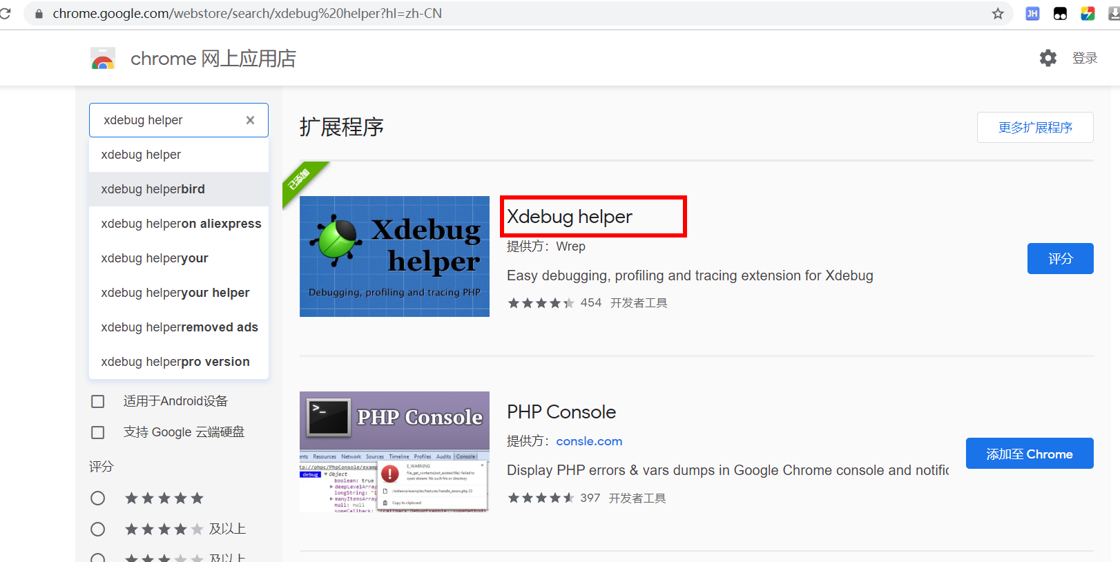 到谷歌应用商店: https://chrome.google.com/webstore/category/extensions?hl=zh-CN 搜索安装 Xdebug helper 拓展: